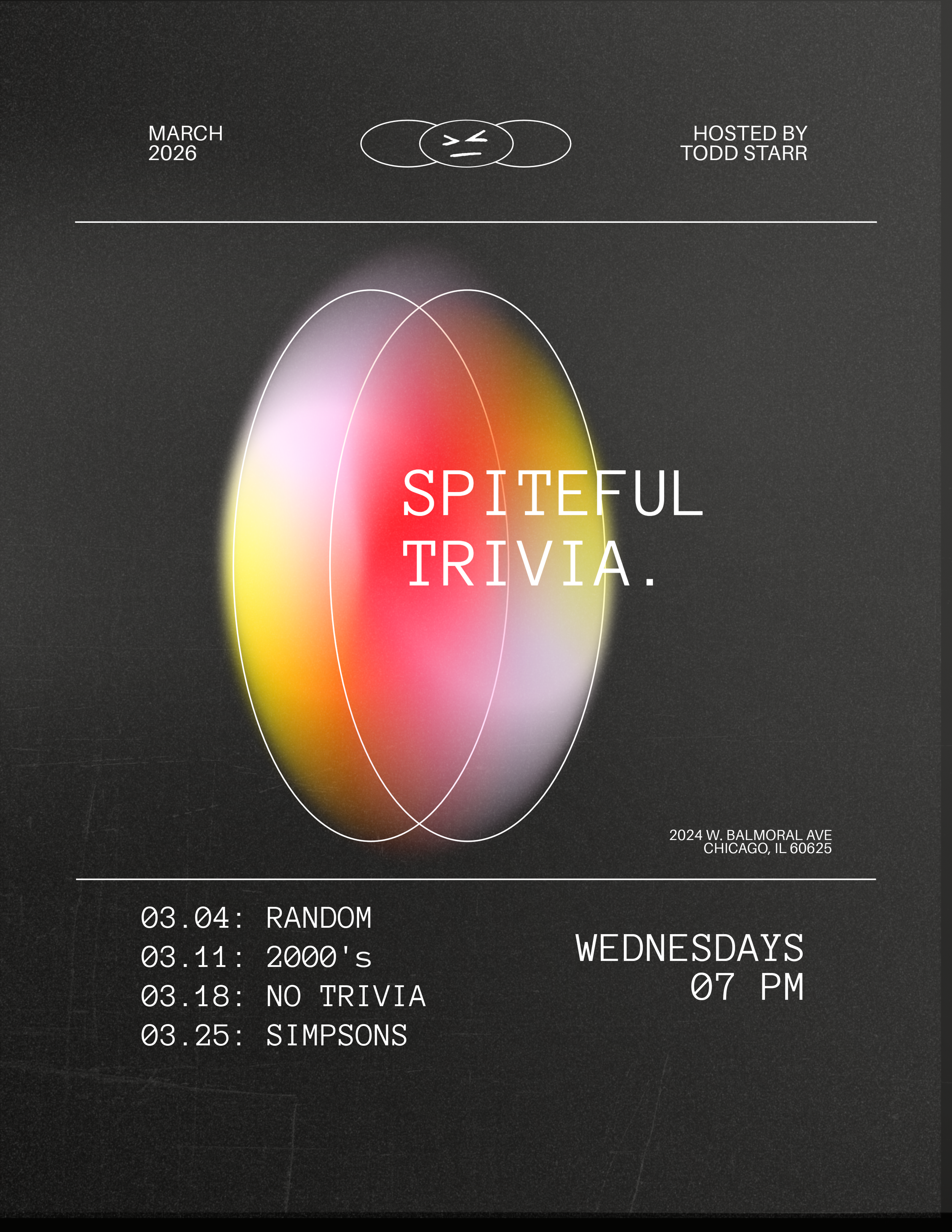Spiteful Trivia is an unforgettable trivia experience hosted by our very own Todd Starr! Get ready to dive into a sea of diverse topics, all expertly crafted and curated by Todd himself. Every Wednesday, from 7pm until closing time, embark on a journey through challenging questions and lively discussions. Don't miss out on the fun.